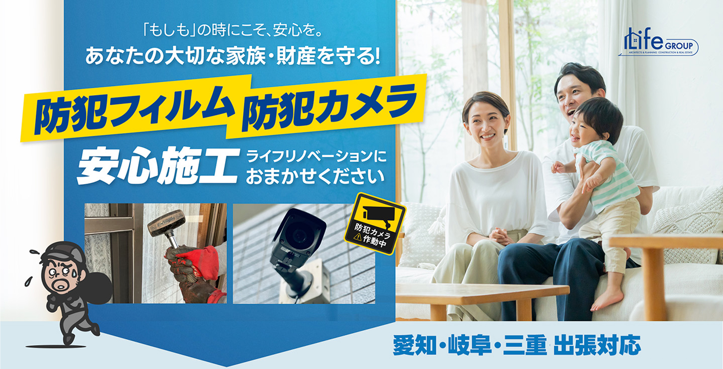 ライフリノベーションさんに相談したところ、防犯フィルムの効果や種類をわかりやすく説明していただき、納得して依頼できました。施工後は外からの見え方も自然で、室内の明るさも損なわれず安心です。何より「ガラスが割られにくい」という安心感があり、夜もぐっすり眠れるようになりました。家族を守るために本当に良い選択をしたと思います。