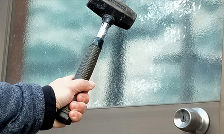 窓ガラスをハンマーや金属バットで叩いても、破れにくくし侵入までの時間をかせぎます。